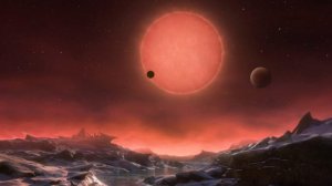 Artist’s impression of a planet orbiting in the TRAPPIST-1 system. (Image credit: ESO/M. Kornmesser.)