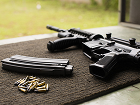 Guns and parts places on a table in a shooting range (Image courtesy: Bureau of Alcohol, Tobacco, Firearms and Explosives)